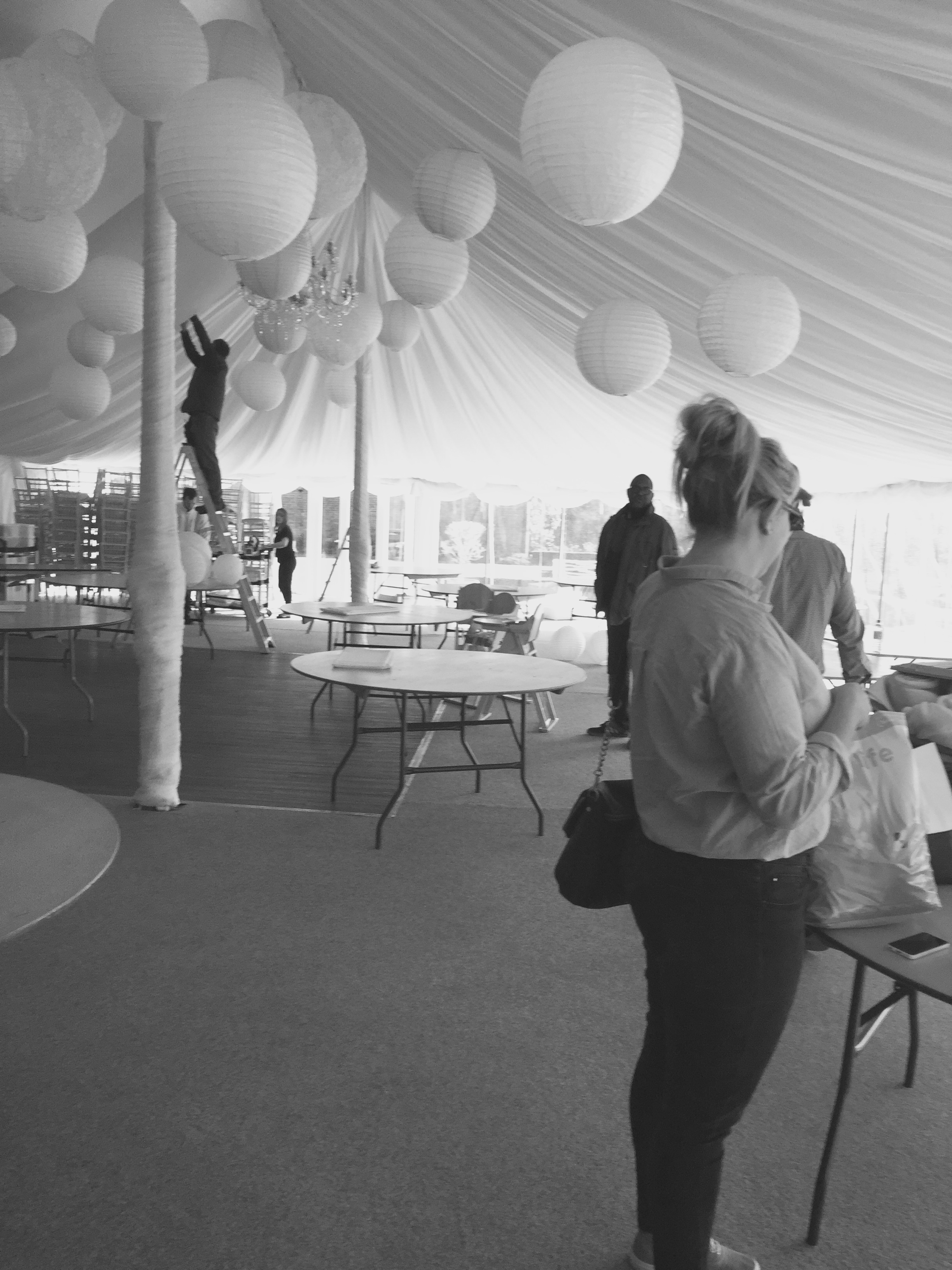 Amidst laters being hoisted and pristine white table clothes being pressed, we laughed and joked and reeled with excitement about the day ahead. The bride to be was composed and kept her head in the game ( well someone had to!)